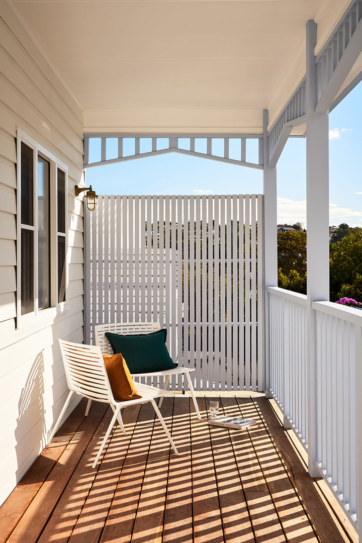 The result is best described as contemporary coastal with a nod to heritage, including subtle tributes to the original architecture, like the reinterpretation of the home’s triangular architraves through balcony fretwork.